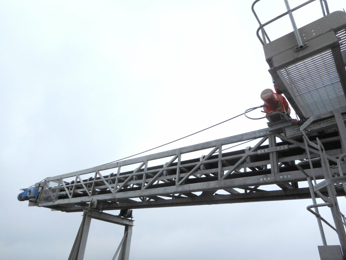 The cable reeling drums were manufactured with special ‘marine duty’ paint and installed on the conveyor. The motorised cable reeling drum allows power to be supplied and fed to the motors of the moving telescopic section.