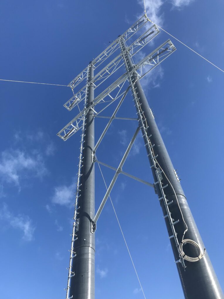 The Invisirung® ladder sections were supplied to Balfour Beatty who installed each 24m composite pole with a 20m length of Invisirung® before being erected on the project site that spans a distance of 22km.
