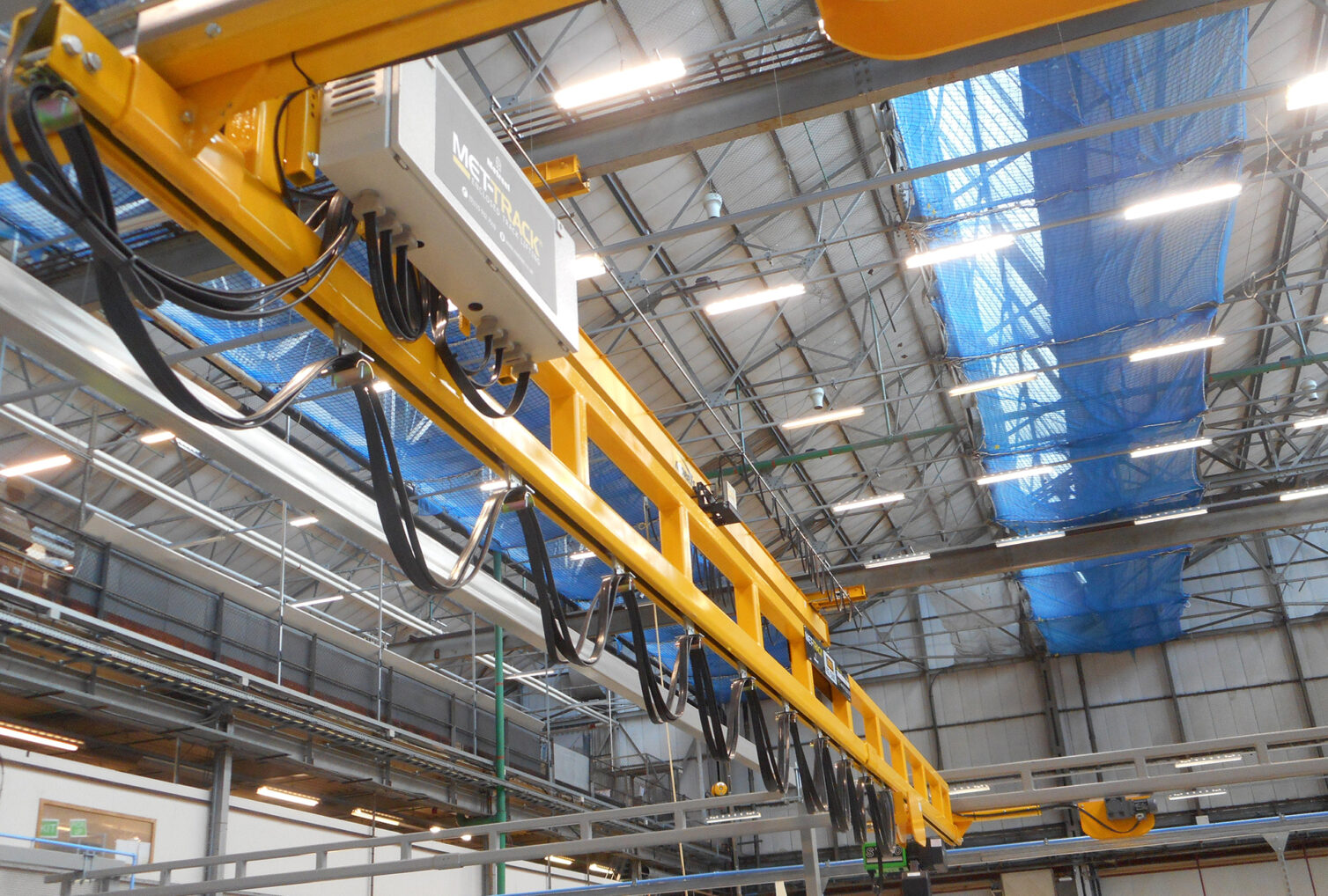 Following this installation, Metreel were asked to supply and install two Met-Track® Jib Cranes with lifting capacities up to 1000Kg. Both had 3m spans and were mounted to the shop floor in 2 work cells.