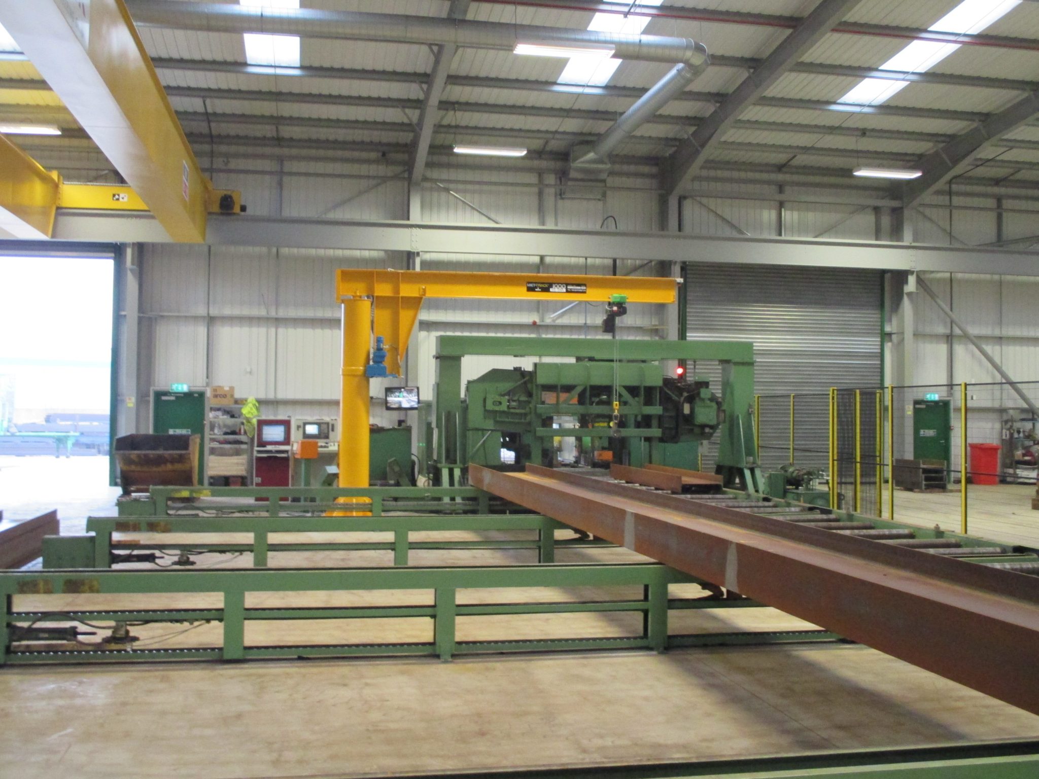 The steel off-cuts could weigh up to 1Ton and be of various shapes and sizes. For each of the 4 saw/cutting machines, Metreel supplied and installed a floor-mounted Met-Track® Workstation Jib Crane with a 1000Kg SWL to their busy steelwork factory.